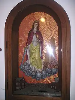 Im Inneren befindet sich ein Altar mit einem geschnitzten Bildnis der hl. Barbara. Dieses war ursprünglich Teil des Altars im Zechenhaus der „Grube Anselm“. Es wurde in der Mitte des 19. Jahrhunderts von einem unbekannten Künstler geschaffen.