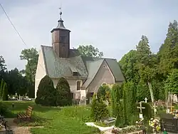 - Ruine Schloss Berthelsdorf[2]: Das Schloss wurde 1772 von Graf von Rothkirch an der Stelle einer früheren Gründung aus dem 16. Jahrhundert errichtet. Davon zeugt der steinerne Arkadengang des Tores, der in der den Komplex umgebenden Mauer aus dem Jahr 1565 erhalten ist. Beim Umbau um 1890 wurde an der Nordseite ein Turm angebaut. Bis 1945 war es im Besitz der Familie von Wartenberg. Nach dem Krieg sollte das Schloss die Sommerresidenz des Präsidenten der Republik Polen werden, wurde aber schließlich dem örtlichen Staatsgut übergeben. Seit den 1980er Jahren nicht mehr benutzt, verfiel es zur Ruine.