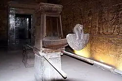 In ptolemäischen Tempeln war der Barkenraum an den Rückseiten durch einen Umgang freigestellt. Größere Tempel besaßen mehrere Barkenräume.