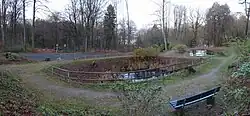 Ebenfalls 1889 wurde die Anlage eines Kinderspielplatzes und einer Meierei in einem Steinbruch auf dem Gutshofgelände im Fischertal vorgeschlagen. Die Meierei Fischertal wurde im Schwarzwaldhausstil nach den Plänen der Architekten Herrmanns und Riemann fertiggestellt, aber letztendlich nie als Meierei betrieben.[12][11] Das als Ausflugslokal genutzte Haus und der Spielplatz fielen 1943 wie das Turmdenkmal und andere Bauwerke in den Anlagen den Bombenangriffen auf Barmen zum Opfer und wurden nicht wieder aufgebaut. Auf dem Gelände der Meierei befinden sich heute Tennisplätze und eine Minigolfanlage.