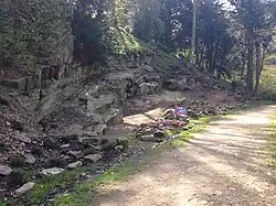 Die ehemalige Trasse der Barmer Bergbahn wurde 2006 im Wald durch Stelen abgesteckt