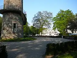 Der Verschönerungsverein als Besitzer der Anlagen stellte immer wieder sein Gelände den öffentlichen Interessen zur Verfügung, insbesondere für die Errichtung zahlreicher Kriegerdenkmäler und Denkmäler verdienter Bürger der Stadt.[10] So wurde 1874 im Westen der unteren Barmer Anlagen ein turmartiges Kriegerdenkmal für die Gefallenen der Stadt Barmen im Deutsch-Französischen Krieg 1870/71 errichtet.[12] Der Bau wurde bereits am 5. September 1871 von der Barmer Stadtverordneten-Versammlung beschlossen und nach dreijähriger Bauzeit im Oktober 1874 feierlich mit Reden des Oberbürgermeisters und eines Pastors, mit zwei Militärkapellen und bengalischen Feuern eingeweiht.[15] 1877 erfolgte nebenan der Bau einer Musikhalle.[12]