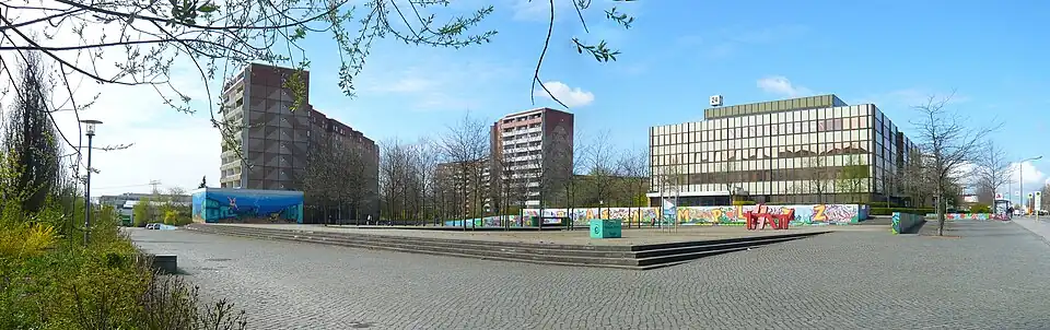 Südwestlich des neuen Platzes – etwa 300 m entfernt – befindet sich südlich der Wörlitzer Straße der um 1985 angelegte Clara-Zetkin-Park.