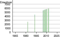Nach einer Berechnung für das Jahr 2013 leben dort etwa 5799 Einwohner, das Ergebnis der letzten veröffentlichten Volkszählung von 1993 betrug 4257.[1]