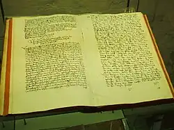 - die zweibändige Haupthandschrift von 1596: Hs 0386 a und b (Altsignaturen HSII.157 und HSII.158), 455 und 171 Folioblätter[8]