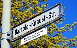 - ↑ Helmut Zimmermann: Bartold-Knaust-Straße. In: Die Strassennamen der Landeshauptstadt Hannover, Verlag Hahnsche Buchhandlung, Hannover 1992, ISBN 3-7752-6120-6, S. 34