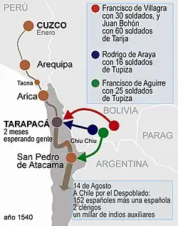 - ↑ Weldon Vernon, Ida Stevenson: Pedro de Valdivia, Conquistador of Chile: Conquistador of Chile. Greenwood Press, 1969, S. 77 (eingeschränkte Vorschau in der Google-Buchsuche).