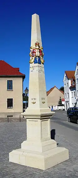 - Nachbildung der kursächsischen Postmeilensäule von 1730 auf dem Markt, eingeweiht am 17. August 2014
