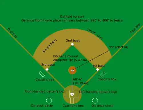 Das Baseballfeld oder baseball diamond ist das Feld, auf dem das Spiel Baseball gespielt wird.
