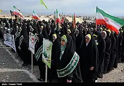 Basidsch, mit vollem Namen Sāzemān-e Basidsch-e Mostazʿafin (persisch سازمان بسيج مستضعفين, DMG Sāzemān-e Basīǧ-e Mostażʿafīn, ‚Organisation der Mobilisierung der Unterdrückten‘), international auch Basij, ist eine von der Islamischen Republik Iran geschaffene Miliz, die sich aus Freiwilligen rekrutiert, die Regierung unterstützt und von dieser zur Kontrolle der iranischen Gesellschaft eingesetzt wird.[1] Ein Angehöriger dieser Miliz wird als Basidschi bezeichnet (deutscher Plural: Basidschis). Am 26. November 1979 durch einen Erlass von Ruhollah Chomeini gegründet, ist die Basidsch-Miliz organisatorisch eine Abteilung der Islamischen Revolutionsgarde. Im Ersten Golfkrieg gegen den Irak (1980–1988) fanden zehntausende Basidschis in teils jugendlichem Alter bei Menschenwelle-Angriffen und als menschliche Minenräumer auf dem Schlachtfeld den Tod. Nach dem Ende des Krieges erhielt die Miliz den Auftrag, das Prinzip des Gebieten des Rechten und Verbieten des Verwerflichen umzusetzen. Damit wurde sie zu einem entscheidenden Bestandteil der Strategie des iranischen Regimes zur Schaffung einer „frommen Gesellschaft“.[2] Seither hilft die Basidsch-Miliz der Führung des Landes dabei, die politische Kontrolle aufrechtzuerhalten, indem sie Iraner indoktriniert, die Gesellschaft überwacht und Dissidenten unterdrückt.[1] Sie wird auch genutzt, um eine strenge Kontrolle über Seminarstudenten (ṭollāb) auszuüben und dissidente Geistliche zum Schweigen zu bringen.[3]