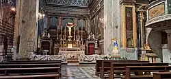 Das Chorgestühl wurde um das Jahr 1777 von Raffaele Gonella und Sohn erbaut, ist aus massivem, poliertem Nussbaumholz. Die Orgel hinter dem Hochaltar mit zwei Manualen und Pedal verfügt über 29 Register, sie wurde am 25. April 1930 eingeweiht. Die Seitenwände des Chors werden von sechs Fresken bereichert: Mariä Verkündigung, Marias Besuch bei der heiligen Elisabeth, eine Gürtelmadonna, Darstellung des Herrn, Mariä Geburt und von der Auseinandersetzung des heiligen Augustinus mit den Manichäern und den Pelagianern. Das zentrale Kirchenschiff bewahrt eine Kanzel aus polychromem Marmor aus dem 17. Jahrhundert, die Marmortreppe wurde aus einem einzigen Block geschaffen. In den zwölf Lünetten, die die Fenster flankieren, stellte der Künstler Tito Troja von 1881 bis 1882 weibliche Figuren aus dem Alten Testament dar. Oben, an der Innenwand der Fassade, ist die Krönung Mariens dargestellt. Prospero Piatti ist der Autor des Freskos, das die gesamte Rückseite des Kirchenschiffs einnimmt und die Ankunft der Madonna darstellt. Die anderen Fresken sind vom selben Künstler: die Abfahrt der Ikone aus Shkodra und die Krönung des Bildes.