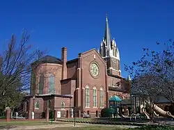 Die dreischiffige Basilika wurde auf einem kreuzförmigen Grundriss im neugotischen, viktorianisch geprägten Stil aus dunkelroten Ziegeln errichtet, die mit Bedford-Kalkstein und stumpf glasiertem Terrakotta-Putz abgesetzt wurden. Die 40 Meter lange Kirche hat eine innere Höhe von 15,6 Metern. Mit den niedrigeren Seitenschiffen hat die Kirche eine Breite von 19,5 Metern, im Querschiff 24 Meter. Der Altarraum wird mit einer fünfseitigen Apsis abgeschlossen, deren Fenster aus München kommen. Über dem Eingangsbereich ragt der Turm empor, dessen Helm mit einem Kreuz auf 49,7 Meter ragt. Der Kirchfriedhof befindet sich an der Rückseite der Kirche.[1]