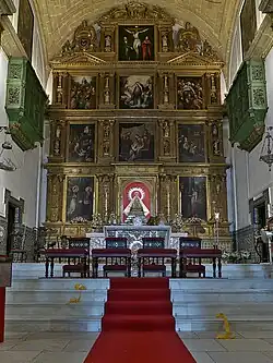 Im Inneren der Kirche befindet sich der Altaraufsatz des Hochaltars aus dem Jahr 1612, der von Alonso de Vandelvira entworfen und von Martín Christián und Hernando de Moya ausgeführt wurde. Sie besteht aus drei Abschnitten, drei Schiffen, die durch Doppelsäulen voneinander getrennt sind, und einem Dachgeschoss, das mit Gemälden von Francisco Juanete, die auf das Leben der Jungfrau und Reliquienschreine anspielen, verziert ist. Das ikonografische Programm wird in den verschiedenen Altären und an den Wänden durch verschiedene Gemälde vervollständigt, wie z. B. den Baum des Jesse, der mit dem Stammbaum der Guzmans verglichen wird, die Auferstehung Christi und andere. Die Kirche beherbergt seit jeher auch eine bedeutende Sammlung von Reliquien sowie Gold- und Silberschmiedearbeiten, die vom Haus Medina-Sidonia gestiftet wurden, darunter die Reliquienschreine des Gefolges der Heiligen Ursula und der Elftausend Jungfrauen, büstenförmige Skulpturen, die um 1520–1530 in Flandern hergestellt und von Kaiser Karl V. gestiftet wurden.