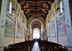 Der Innenraum ist mit großen Mosaiken und acht Gemälden von Lionel Royer ausgestattet, die das Leben der Heiligen darstellen. In der Krypta, die Unserer Lieben Frau von den Armeen gewidmet ist, befindet sich die Statue Unserer Lieben Frau von Bermont, die Jeanne kannte und vor der sie zu beten pflegte. Zwei Gemälde von Alphonse Monchablon erinnern dort an Das Opfer der Armee und der Marine während des Krieges von 1870 (eines der Armee, das andere der Marine).[4]