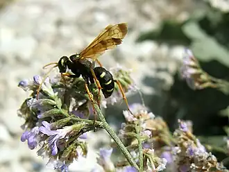 Die Wespen besiedeln vorwiegend offene Lebensräume und Waldränder. Die Weibchen graben ihre Nester im Boden. Die Larven werden mit Spinnen der Familie Araneidae versorgt.[2]