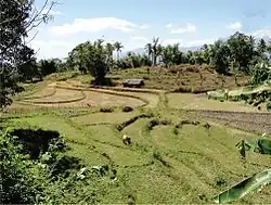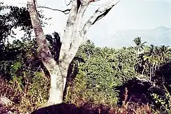 Der Westen Baucaus ist mit seinem Plateau im Gegensatz dazu eine der trockensten Regionen Timors.[63] Zwar gibt es entlang der Nordküste nach Westen hin noch geringere Mengen an Niederschlägen,[64] doch fehlen hier ganzjährig wasserführende Flüsse aus dem Süden, wie den Seiçal in Ostbaucau. Dies führt vor allem in der langen Trockenzeit zu Problemen bei der Nahrungsmittelversorgung. Zwischen aus dem Boden ragenden Kalksteinfelsen ist nur Platz für kleine Parzellen, auf denen Mais, Erdnüsse, Tabak, Sago, Yams, Süßkartoffeln, Tomaten, Pfeffer und Wassermelone wachsen. Das sogenannte Siam weed (Chromolaena odorata) reduziert als aggressives Unkraut die Anbauflächen noch weiter. Zusätzliche Probleme verursacht die Bodenerosion.[65]