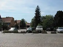 Ehem. Bauernhof Robert-Werner-Platz 11; gepflasterte Fläche (2012) vor der Umgestaltung zum Stadtgarten
