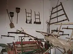 Der Bogen der ausgestellten Geräte spannt sich von einfachen Bodenbearbeitungsgeräten über Erntemaschinen – von der Sichel bis zum Garbenbinder – zu Dreschmaschinen verschiedener Alterskategorien und diversen Pferdefuhrwerken. Zu sehen ist auch eine Reihe alter Traktoren, darunter ein Deering Traktor Petroleum des Baujahrs 1928 und ein Steyr Traktor Typ 180 mit 26 PS aus dem Jahr 1949.