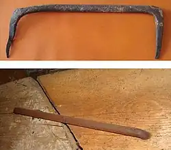 - Typ A als Ziehklammer aus 16 mm Rundstahl. Länge 300 mm, Spitzenhöhe 90 mm.