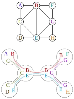 Die Intuition hinter einer Baumzerlegung ist, dass die Knoten des gegebenen Graphen als Teilbaum der Baumzerlegung so repräsentiert werden, dass sie in nur dann benachbart sind, wenn ihre Teilbäume sich schneiden. Das bedeutet, dass ein Teilgraph des Schnittgraphen der Teilbäume ist. Der vollständige Schnittgraph ist ein chordaler Graph.