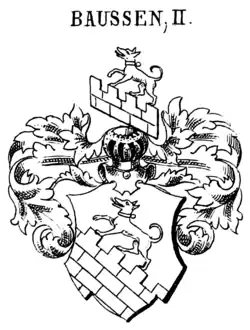 Der Stammvater der Baussen in Halle war Hermann Buße, der 1415 gelebt hat. Seine Nachfahren waren Ratsmeister, Oberbornmeister, Thalschöppe, Pfänner, Kirchenvorsteher und Worthalter zu Halle.[8] Auch diese Familie hatte ein eigenes Wappen[9], das sich aber stark von den beiden ursprünglichen Wappen unterscheidet. Hans und Hermann Buße erhielten 1466 von Erzbischof Johannes von Magdeburg das Rittergut Volkstedt,[10] das Bruno Buße 1501 verkaufte.