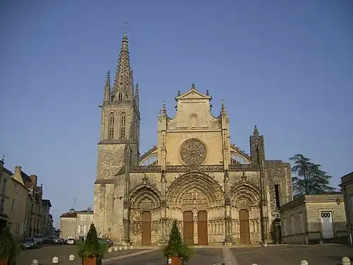 Die Kathedrale wurde im 13. und 14. Jahrhundert nach dem Vorbild der großen nordfranzösischen Kathedralen errichtet. Ihren ursprünglichen Ruf erreichte sie durch eine dort aufbewahrte Reliquie mit dem Blut Johannes des Täufers. 1561 wurde sie von Hugenotten verwüstet, das dreifache Portal, eines der schönsten Beispiele der Bildhauerkunst der Gironde, konnte jedoch vor der Zerstörung gerettet werden. Mit Geld des französischen Parlamentes und unter großem persönlichen Einsatz des Bischofs Arnaud de Pontac konnte die Kirche zwischen 1583 und 1605 wieder aufgebaut werden.