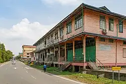 Die zum Fluss hin gelegenen Häuser sind auf Stelzen gebaut, da der Padas River (Sungai Padas) vor der Regulierung durch den Padas-Staudamm häufiger über seine Ufer trat.