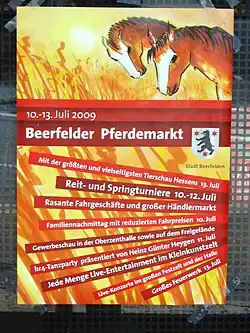 - ↑ Beerfelden: Der Pferde-, Fohlen- und Zuchtviehmarkt am 2. Sonntag und Montag im Juli. Historisches Ortslexikon für Hessen. (Stand: Oktober 2017). In: Landesgeschichtliches Informationssystem Hessen (LAGIS).