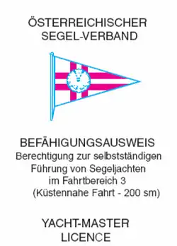 - ↑ Österreichischer Segel-Verband: Prüfungsordnung für Prüfungen zum Erwerb eines Befähigungsausweises in den Fahrtbereichen 2, 3 und 4 PRO 2005. (PDF, 354 kB)