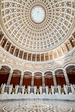Die Wände werden gegliedert durch 18 Segmentbogennischen, über denen sich ein Bereich mit Tafeln befindet, und eine abschließende Säulengalerie toskanischer Ordnung, über der sich wiederum ein Bereich mit Inschriften befindet. Vor den Nischen, die die Namen der Schlachten der Befreiungskriege tragen, stehen jeweils zwei 3,30 m hohe Siegesgöttinnen, so dass sich insgesamt die Zahl von 34 Standbildern ergibt. Je zwei der Siegesgöttinnen halten einen zwischen ihnen auf niedrigem Marmorsockel stehenden Bronzeschild, während sie die freie Hand den Nachbarinnen reichen. Dadurch bilden sie einen feierlichen Reigen, der nur von den beiden Viktorien neben dem Eingangsportal unterbrochen wird. Letztere wurden aus weißem Tiroler Marmor gefertigt und halten in der portalseitigen Hand je einen Palmenzweig. Da der Tiroler Marmor sehr teuer war, wurden die anderen Siegesgöttinnen aus weißem Carrara-Marmor gefertigt.