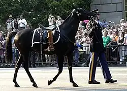 Bei ranghohen Offizieren war es üblich, ein reiterloses Pferd im Trauerzug mitzuführen. Das war ein gesatteltes Pferd mit verkehrt in die Steigbügel gesteckten Stiefeln. Dies sollte die momentane Führungslosigkeit der betreffenden Einheit symbolisieren.