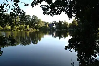 ![]() Gondelteich in Oppach, Blick zur Dammmühle | ||