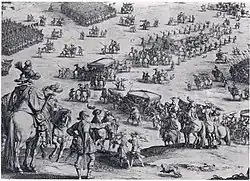 - ↑ Beate Engelen: Jacques Callot – Die Belagerung von Breda. Kunst über den Krieg als Apotheose und Sinnbild. In: Jutta Nowosadtko, Matthias Rogg: „Mars und die Musen“: Das Wechselspiel von Militär, Krieg und Kunst in der Frühen Neuzeit. Münster 2008, S. 138f.