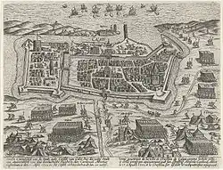 Die Belagerung von Calais im Jahr 1596, auch bekannt als die „spanische Eroberung von Calais“, fand in der strategisch wichtigen Hafenstadt Calais zwischen dem 8. und 24. April 1596 als Teil des französisch-spanischen Krieges (1595–1598) im Kontext des Achten Hugenottenkrieges, des Englisch-Spanischen Krieges (1585–1604) und des Achtzigjährigen Krieges statt.[1][2][3] Die Belagerung endete, als die Stadt nach einer kurzen und intensiven Belagerung durch die spanische Flandernarmee unter dem Kommando von Erzherzog Albrecht von Österreich, Statthalter der habsburgischen Niederlande, in spanische Hände fiel.[1][2] Die französischen Truppen in der Zitadelle von Calais leisteten noch einige Tage lang Widerstand, doch schließlich stürmten die spanischen Truppen unter der Führung von Don Luis de Velasco y Velasco, Graf von Salazar, am 24. April die Festung und eroberten sie, wobei sie einen vollständigen Sieg errangen.[2] Der spanische Erfolg war die erste Aktion des Feldzugs von Erzherzog Albrecht im Jahr 1596.[4]