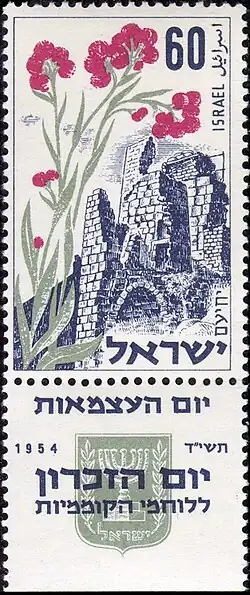 Anlässlich des Jom haSikkarons und der sechsten Wiederkehr des Jom haʿAtzmaʾut 1954 gab der Doʾar Jisraʾel (Post Israels) eine Briefmarke zum Gedenken der Belagerung Jechiʿams heraus, die die Festung Gadin zeigt.