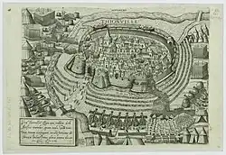 Am 17. April trafen die ersten Truppen von Vieilleville außerhalb der Stadtmauern ein und errichteten an den wichtigsten Punkten Belagerungswerke, die die Lebensmittelversorgung der Stadt unterbrachen. Am 26. April trafen die deutschen Truppen zusammen mit den anderen von Imbert de Bourdillon entsandten französischen Verstärkungen ein, so dass die Stadt vollständig umstellt werden konnte. Anfang Mai schickte Guise eine Nachricht, in der er den Seigneur de Vieilleville aufforderte, mit weiteren 400 Bewaffneten, 500 Mann leichter Kavallerie und 1.000 berittenen Arkebusieren auf seine Ankunft zu warten – er und Piero Strozzi erreichten die Stadt schließlich am 28. Mai. Damit belief sich die französische Streitmacht auf etwa 12.000 Mann, andere Quellen gehen von 12.000–14.000 oder sogar 10.000 Franzosen und 20.000 Deutschen aus. Die Garnison bestand nur aus etwa 3.000 Mann, 50 Feldschlangen und anderen Artilleriegeschützen, die von Jean Carrebe, einem Richter aus Löwen, befehligt wurden.