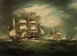 ![]() Capture of the ‘Gypsy’, 30 April 1812, Gemälde von Thomas Buttersworth: links die Belle Poule