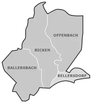 - ↑ Karl-Heinz Gerstemeier, Karl Reinhard Hinkel: Hessen. Gemeinden und Landkreise nach der Gebietsreform. Eine Dokumentation. Hrsg.: Hessischer Minister des Inneren. Bernecker, Melsungen 1977, OCLC 180532844, S. 306.
