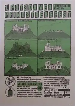 1987 schloss sich eine Gruppe junger Potsdamer zusammen, die es sich zur Aufgabe machte, das ruinöse und zugewachsene Bauwerk aus seinem „Dornröschenschlaf“ zu befreien und die umgebende Landschaft auf dem Pfingstberg wiederherzustellen. Unter dem Dach des Kulturbundes der DDR gründeten sie 1988 die „Arbeitsgemeinschaft Pfingstberg“. Ein Meilenstein war das "Pfingstbergfest" am 10. Juni 1989, bei dem zahlreiche Künstler auftraten und tausende Potsdamer das Gebäude erstmals besuchten. 1990 wurde die Arbeitsgemeinschaft in „Förderverein Pfingstberg e. V.“ umbenannt. Der Verein betreibt das Denkmal bis heute.
