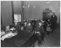 Richter Lindsey (am Tisch sitzend) verhandelt, rechts von ihm Ida Gregory (ca. 1910).