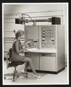 1956 stellte die Computerabteilung von Bendix Aviation den Bendix G-15 vor, einen Minicomputer, der die Größe von zwei hohen Aktenschränken hatte. Das Unternehmen verkaufte etwa 400 davon zu Preisen ab 50.000 US-Dollar. Die Computerabteilung von Bendix wurde 1963 von der Control Data Corporation übernommen, die die G-15 noch einige Jahre lang unterstützte.[34][35]