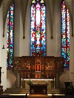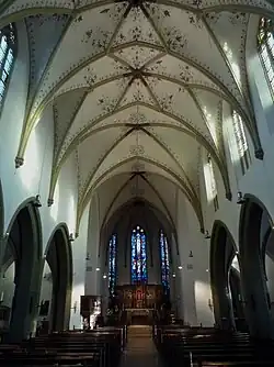 Eine erste Kirche war aus Holz. Ein romanischer Nachfolgebau wurde in Stein errichtet. Der Westturm der heutigen Kirche stammt noch aus romanischer Zeit (um 1200). Um 1474 erfolgte ein Neubau des einschiffigen Langhauses und des Chores mit vier längsrechteckigen Jochen im spätgotischen Stil. Die Joche sind mit einer farbigen Rankenmalerei ausgemalt. Besonders üppig ist die Malerei in den drei westlichen Jochen. In dieser Zeit entstand auch ein Kreuzgang. Zur Innenausstattung gehörte der Rosenkranzaltar. Teile des später zerlegten Altars befinden sich im Kunstmuseum Münster und in der National Gallery in London, sie werden einem unbekannten Meister zugeschrieben.