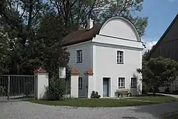 Der zweigeschossige Satteldachbau mit Rundgiebel wurde renoviert und dient heute als Vereinshaus.