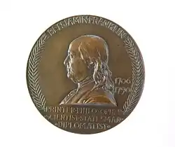 1906 beschloss der Kongress der Vereinigten Staaten anlässlich der zweihundertsten Wiederkehr des Geburtstags von Benjamin Franklin (neben John Bartram einer der beiden Gründer der American Philosophical Society, damals unter dem Namen Philosophical Society), dem Außenminister der Vereinigten Staaten zu erlauben, eine Medaille zu Franklins Gedächtnis prägen zu lassen. Die Erste Medaille – in Gold – ging auf Anweisung des damaligen US-Präsidenten, Theodore Roosevelt, an die Französische Republik. Der US-Außenminister Elihu Root überreichte sie während einer Feierstunde zum 200. Geburtstag Franklins an den französischen Botschafter, Jean Jules Jusserand.