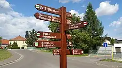 | Zum Torbogen | Benannt nach dem Gebäude mit der Nummer 9 – dem Torhaus des ehemaligen Rittergutes. Die Straße führt mitten durchs Rittergut und erschließt auch den Schloßpark der sich nach dem ehemaligen Marstallgebäude ortsauswärts links anschließt. |