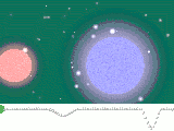 Auch Veränderungen der Helligkeit erlauben Rückschlüsse auf die Natur des Beobachtungsobjekts. So genannte fotometrische Doppelsterne beispielsweise sind im Teleskop nicht getrennt beobachtbar; die Lichtkurve – die zeitliche Variation der Helligkeit – zeigt aber, dass sich hier regelmäßig ein Stern vor einen anderen schiebt. Informationen über die Umlaufbahn von Doppelsternen wiederum können dazu benutzt werden, die Masse jedes der Partner oder zumindest die Gesamtmasse zu berechnen.[33] Andere periodische Helligkeitsschwankungen veränderlicher Sterne entsprechen Sternpulsationen, bei denen der Stern periodisch größer und wieder kleiner wird.[34]