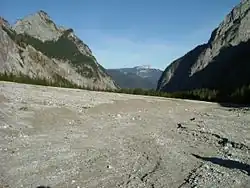 In seiner geologischen Ausweitung ist die Fläche des Berchtesgadener Landes nahezu identisch mit der „Beckenlandschaft“[28] des Berchtesgadener Kessels[28] bzw. der geomorphologischen Einheit Berchtesgadener Talkessel,[29] die von den Hochgebirgsmassiven der Berchtesgadener Alpen umrahmt wird und während der quartären Inlandsvereisung durch den Salzach-Vorlandgletscher morphologisch überprägt worden ist.