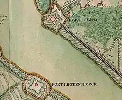 Auch Lillo war ein ehemaliges Polderdorf, das vor allem aufgrund seines gleichnamigen Forts bekannt ist. Im Achtzigjährigen Krieg wurden zwischen 1578 und 1580 auf Befehl von Wilhelm von Oranien zur Verteidigung Antwerpens die Zwillingsfestungen Lillo und Liefkenshoek (am rechten bzw. linken Ufer der Schelde) errichtet. Nach dem Fall Antwerpens (1585) blieben Lillo und Liefkenshoek (letzteres von 1584 bis 1664 von den Spaniern besetzt) protestantische Enklaven in der Hand der nördlichen Niederlande. Im 18. Jahrhundert gelangte Lillo je nach Kriegsverlauf abwechselnd in die Hände der Franzosen (1747–1748, 1792, 1795–1814) und der Österreicher (1785, 1793). Ab 1814 und während des belgischen Unabhängigkeitskampfes blieben Lillo und Liefkenshoek bis 1839 in niederländischem Besitz. Im Jahr 1894 wurden die Festungsanlagen außer Betrieb gesetzt, da sie militärisch wertlos geworden waren.[3]