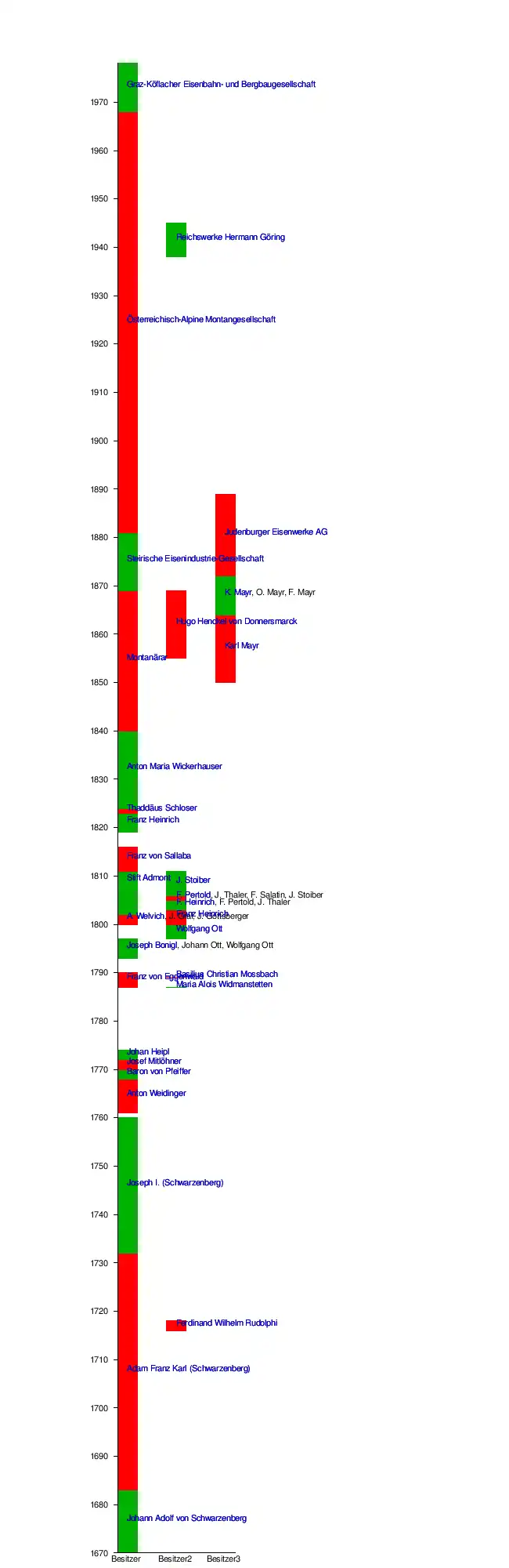 - ↑ a b Helmut Lackner, Karl Stocker: Fohnsdorf – Aufstieg und Krise einer österreichischen Kohlenbergwerksgemeinde in der Region Aichfeld-Murboden; Interdisziplinäre Studien der Projektgruppe Fohnsdorf Aichfeld-Murboden. Hrsg.: Leykam Buchverlag. Graz, Wien 1982, ISBN 3-7011-7142-4, S. 96–97.