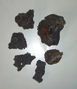 Stücke von Eisenerzschlacke aus der ehem. Schmelze Rehbach, spätmittelalterlich, vor 1578